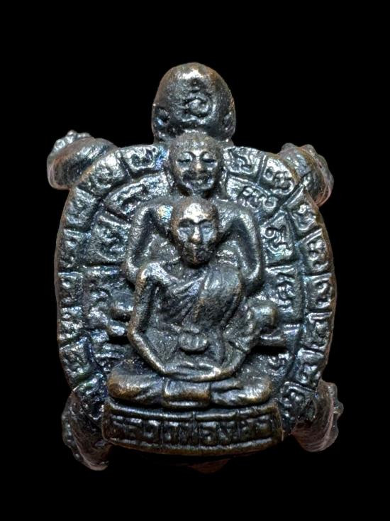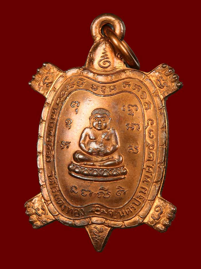 วัดใจ เหรียญพญาเต่าเรือน หลวงปู่หลิว รุ่นไตรมาส วัดไร่แตงทอง จ.นครปฐม พ.ศ 2536 เนื้อทองแดง |