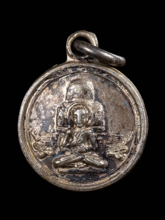 เคาะแรกแดง / เหรียญหล่อหลวงพ่อน้อย วัดธรรมศาลา รุ่นสอง พิมพ์คอน้ำพิมพ์คอน้ำเต้า เนื้อแร่ ปี 2510 จังหวัดนครปฐม |