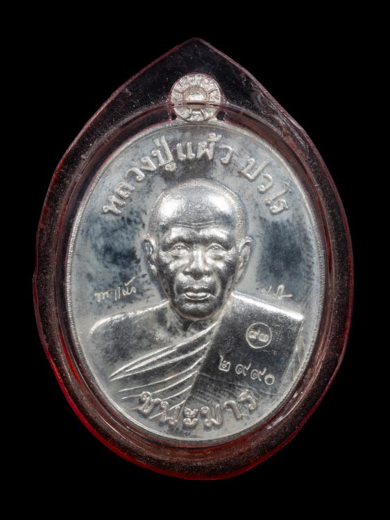 เคาะเดียวแดง เหรียญหลวงปู่แผ้ว รุ่นคงกระพัน 100 ปี เนื้อเงิน |