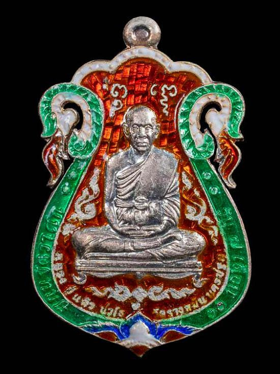 หลวงปู่แผ้ว วัดรางหมัน รุ่นเหนือดวงมหาบารมี เนื้อเงินลงยาราชาวดี ฉลุ กรรมการ No.2 ยาเต็ม จมูกโด่ง |