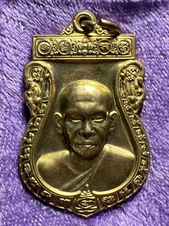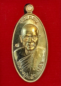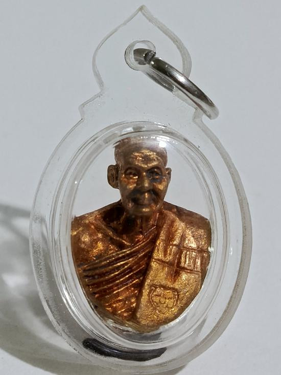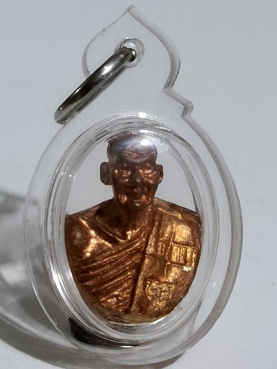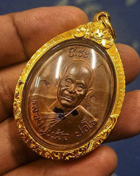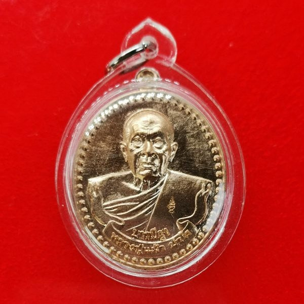 เหรียญบารมีสูง หลวงปู่แผ้ว ปวโร วัดรางหมัน จ.นครปฐม เลี่ยมใส่จีวรสายสิญจน์ |