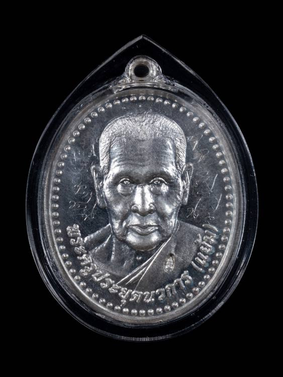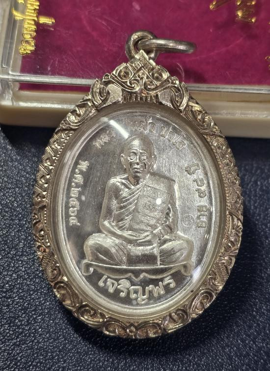 เหรียญเจริญพรล่าง หลวงปู่แผ้ว วัดรางหมัน เนื้อเงิน no.4739 เลี่ยมกรอบเงินแท้สวยๆ พร้อมกล่อง |