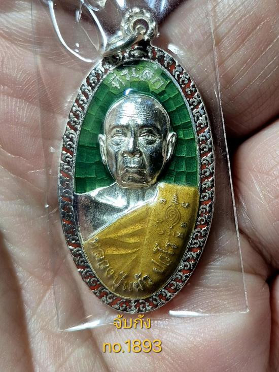 เหรียญใบขี้เหล็กหลวง หลวงปู่แผ้ว ปวโร เนื้อเงินลงยาเขียว หมายเลข1893 พระสวยสมบูรณ์ครับ |