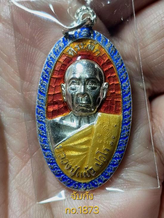 หลวงปู่แผ้ว วัดรางหมัน ใบพาย เนื้อเงินผิวกระจกใสวิ้งๆ จมูก100 เลข 6492 มีกล่องเดิม คัดสวยๆ |