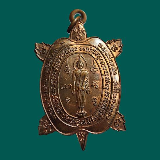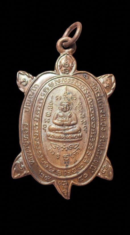 เหรียญพญาเต่าเรือนหลวงปู่หลิว วัดไร่แตงทอง รุ่นปลดหนี้ 2 ปี 2540 บล๊อกทองคำ 10 นิ้ว เนื้อทองแดงผิวไฟ (แดง 1,500) |