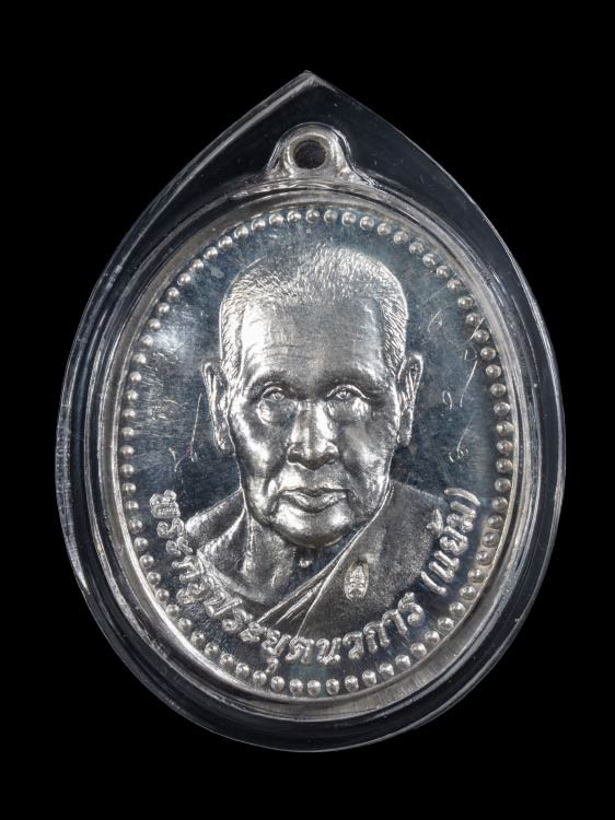 เหรียญ หลวงปู่แย้ม รุ่นเจริญพร อายุ 100 ปี เนื้อเงิน หมายเลข 1407 วัดสามง่าม นครปฐม |