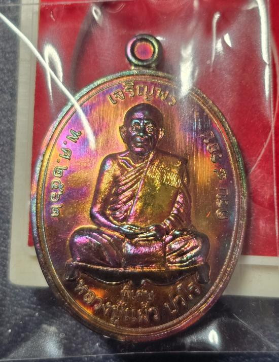 หลวงปู่แผ้ว ปวโร วัดรางหมัน เหรียญรุ่น เจริญพรบน วาระ 8 รอบ (เนื้อทองเเดงผิวรุ้ง) |