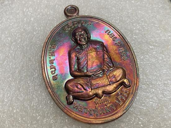 หลวงปู่แผ้ว ปวโร วัดรางหมัน เหรียญรุ่น เจริญพรบน วาระ 8 รอบ (เนื้อทองเเดงผิวรุ้ง) พร้อมกล่อง |