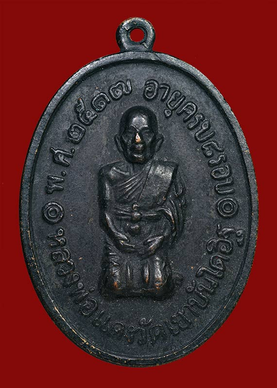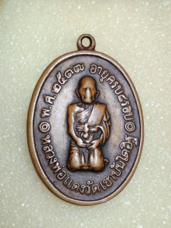 เหรียญหลวงพ่อแดง วัดเขาบันไดอิฐ พิมพ์รูปไข่ เนื้อทองแดง สร้างหลังปี 2517 จ.เพชรบุรี (4) |