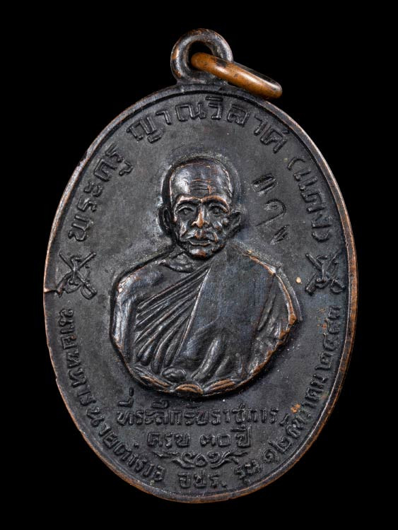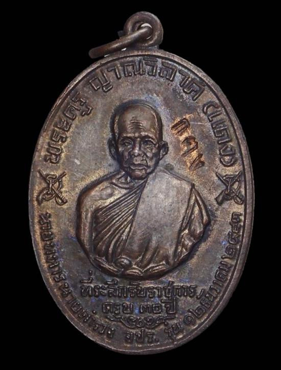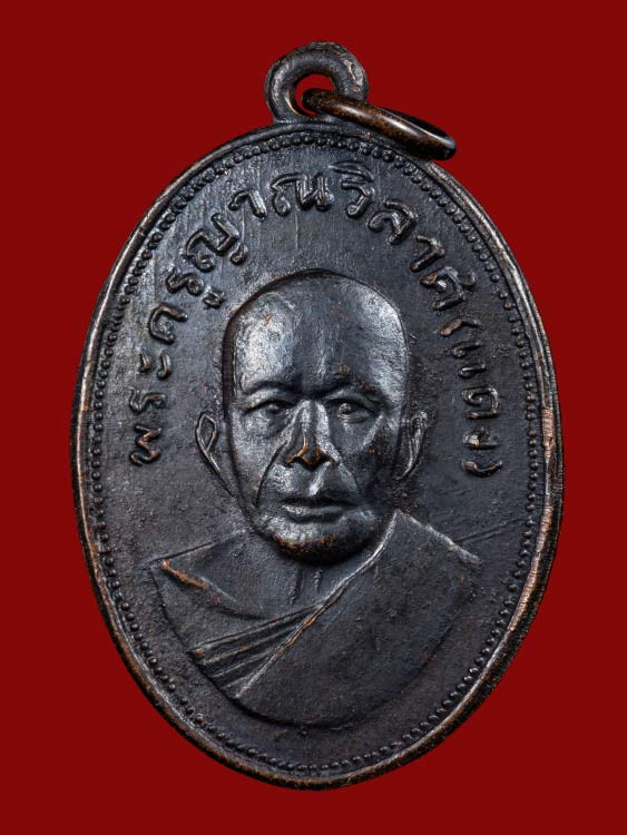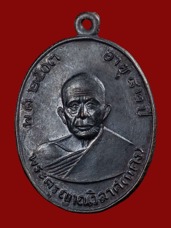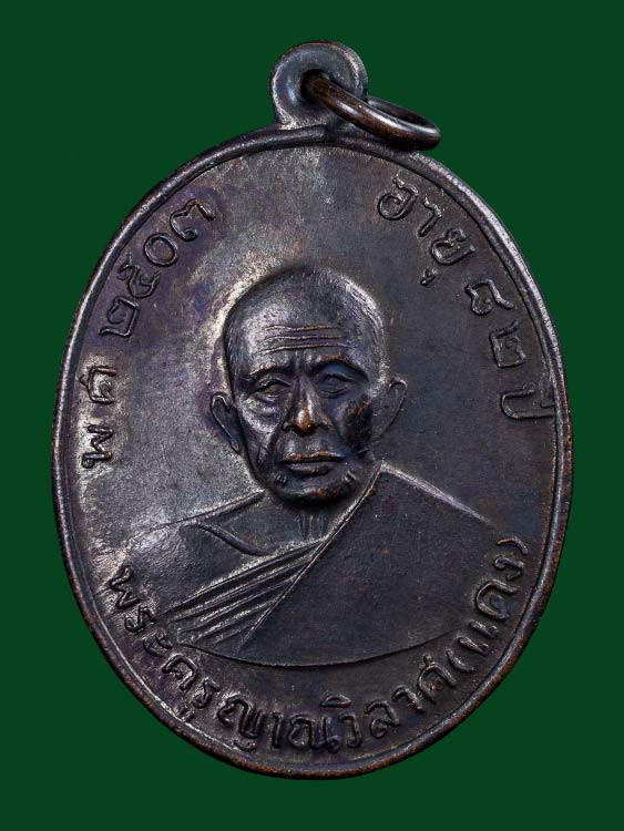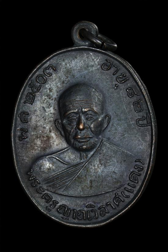 เหรียญ หลวงพ่อแดง วัดเขาบันไดอิฐ รุ่น จปร. เนื้อทองแดงรมดำ ปี 2513 |