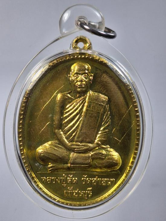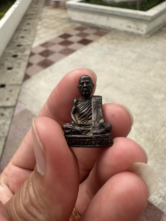 รูปหล่อรุ่นแรก หลวงพ่อตัด วัดชายนา ปี40 เนื้อทองเหลืองรมดำ สภาพดีสวยเดิมๆ มีจารด้านหลังกับใต้ฐาน |