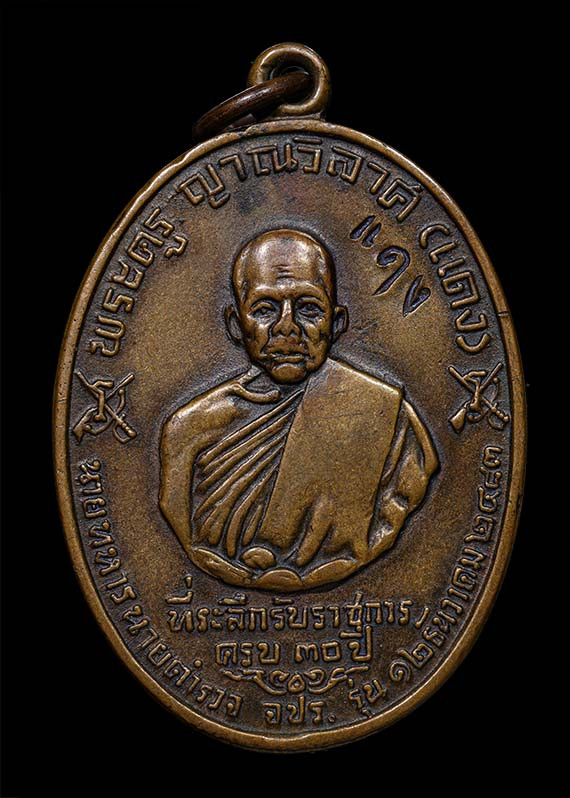 เหรียญหลวงพ่อแดง วัดเขาบันไดอิฐ รุ่น จปร. พิมพ์บาง เนื้อทองแดง ปี 2513 |