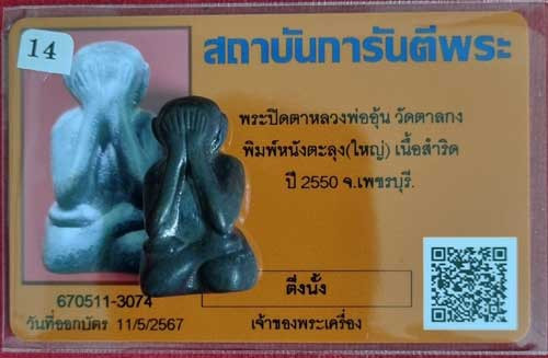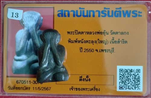 เคาะเดียว! พระปิดตาโยงก้น เนื้อทองฝาบาตร หลวงพ่ออุ้น วัดตาลกง ปี 2544 |