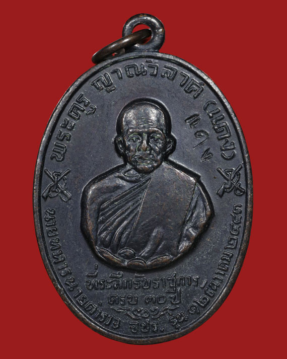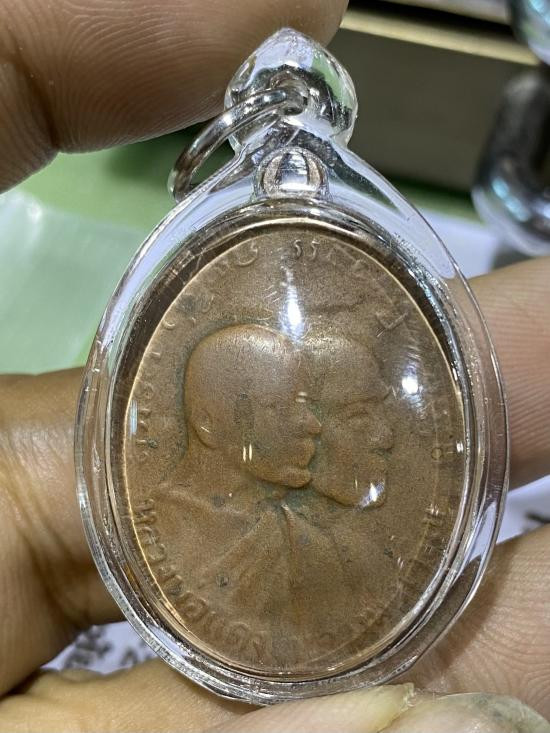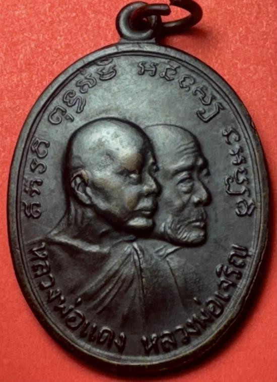 เหรียญสองพี่น้อง หลวงพ่อแดง หลวงพ่อเจริญ รุ่น โบสถ์ลั่น ปี 2512 เนื้อทองแดง |