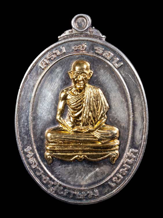 หลวงพ่อเกษม เขมโก พ.ศ.2532 เนื้อเงิน สภาพตามรูป |