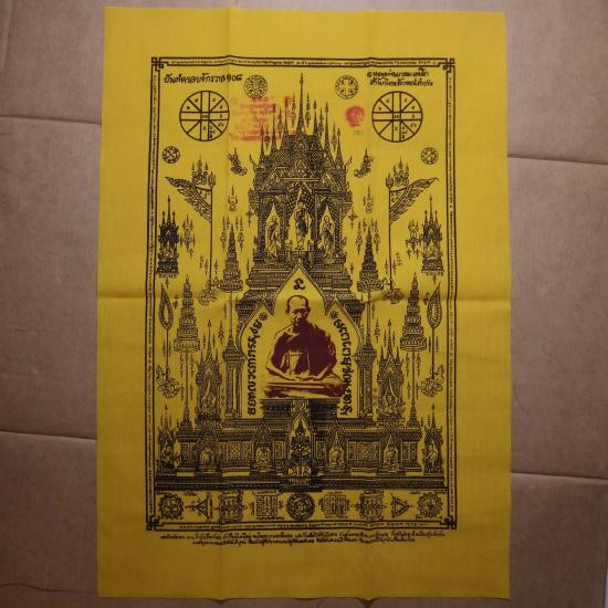 ผืนใหญ่..ขนาด19 X 29 นิ้ว... ผ้ายันต์ครอบจักรวาล 108 หลวงพ่อเกษม รุ่นพุทธคุณ ปี2538 เลข 561 ... 69.1.15 |
