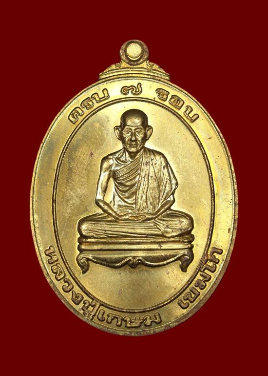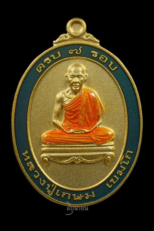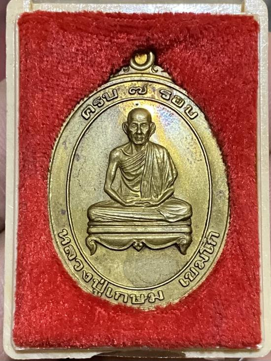 เหรียญปั้ม-แบน-พิมพ์รูปไข่ใหญ่ ((เดิมเนื้อทองแดง-ทำผิวซาตินทองให-ด้านหนลงยา 2 สี ใหม่-ล้อเนื้อทองคำ)) ล.พ.เกษม เขมโก สนส.ไตรลักษณ์ รุ่นครบ 7 รอบ ออก 2538 ((พร้อมกล่องบรรจุเดิมๆ-ใหม่-สมบูรณ์-สวยกริ๊บ)) |