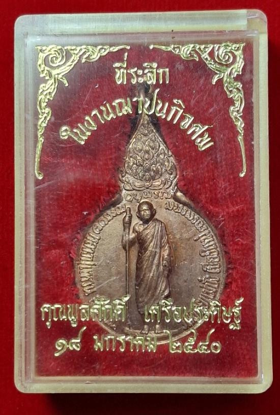 เหรียญยืนถือไม้เท้า หลวงปู่แหวน วัดดอยแม่ปั๋ง จ.เชียงใหม่ ปี2519 (กล่องเดิม สภาพสวย) |
