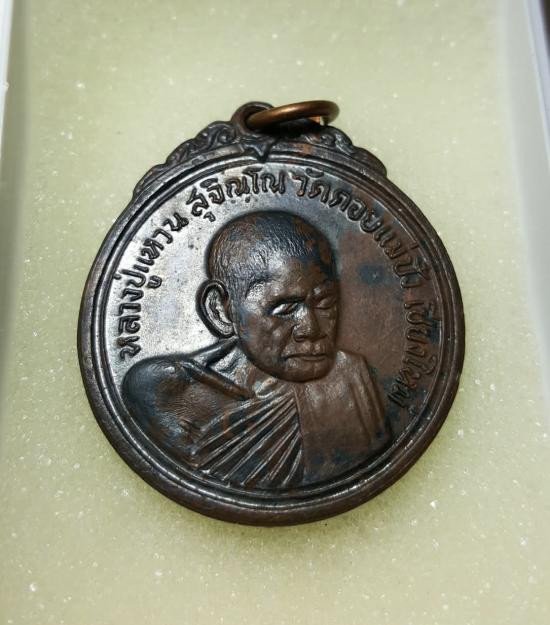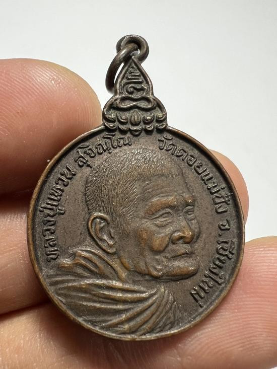 หลวงปู่แหวน วัดดอยแม่ปั๋ง รุ่นสร้างตึกโรงพยาบาล หลัง ภปร.(เล็ก) ปี 2521 เนื้อทองแดง (1) |