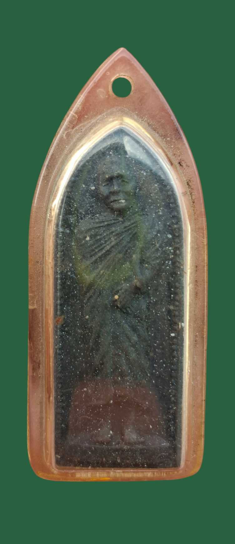 วัดใจ พระปิดตามหาโชค หลวงพ่อเกษม สุสานไตรลักษณ์ ลำปาง เนื้อนวะโลหะ ปี2518 |
