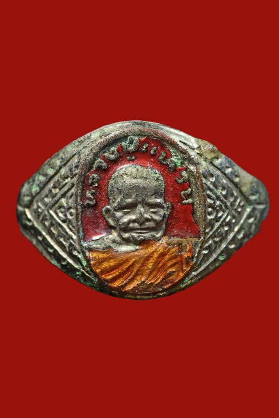 เคาะแรกแดง+ แหวนลงยา หลวงปู่แหวน สุจิณโณ วัดดอยแม่ปั๋ง เนื้อทองแดงชุบนิเกิลลงยา (ขนาดเส้นผ่าศุนย์กลาง1.8ซม.) |