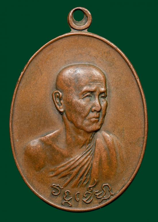 เหรียญยืนถือไม้เท้าหลวงปู่แหวน สุจิณฺโณ หลังภปร. เนื้อทองแดง ปี2519 |