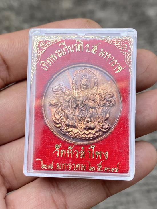 เหรียญเจ้าแม่กวนอิมหลังมังกรเซ็งลี้ฮ้อ หลวงพ่อเกษม ปี37 วัดหัวลำโพง พร้อมกล่อง ผิวไฟ ผิวเดิม ตอกโค๊ต สวยๆ กำลังนิยมครับ(2) |