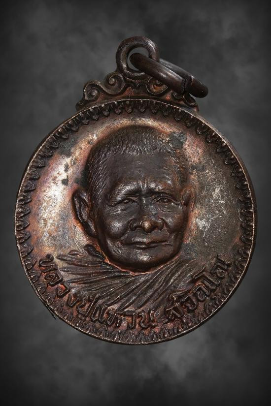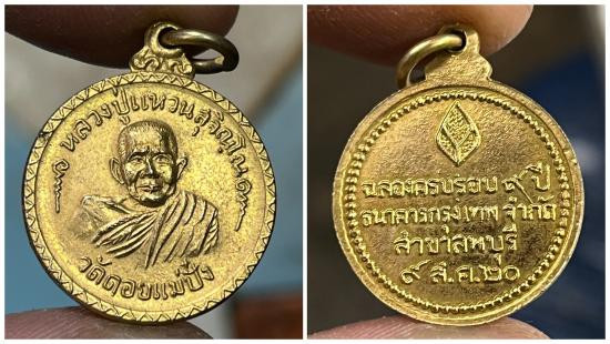 เหรียญหลวงปู่แหวน ปี2520 ที่ระลึกธนาคารกรุงเทพสาขาลพบุรีครบ9ปี กะไหล่ทองเดิมๆ |