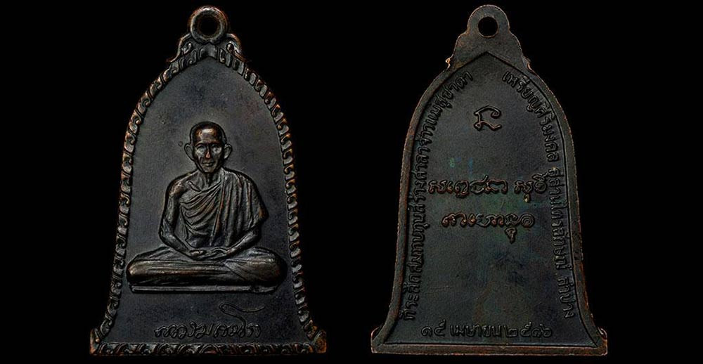 เหรียญหลวงปู่แหวน วัดดอยแม่ปั๋ง รุ่นสร้างตึกโรงพยาบาล หลัง ภปร.(เล็ก) ปี 2521 เนื้อทองแดง |