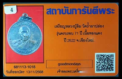 เหรียญหลวงปู่แหวน ๙๕ พรรษา กะไหล่ทอง วัดดอยแม่ปั๋ง จังหวัดเชียงใหม่ ปี๒๕๒๕ + บัตรรับรอง G-Pra |