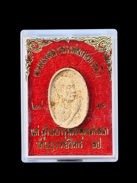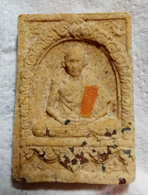พระเนื้อผงรูปเหมือนหลวงพ่อเกษม เขมโก รุ่นเงินทองมั่นคง ปี 2531 |
