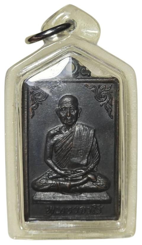 เหรียญสี่เหลี่ยมรุ่น 5 หลวงปู่สิมฯ วัดถ้ำผาปล่อง เนื้อทองแดงรมดำปี 2517 |