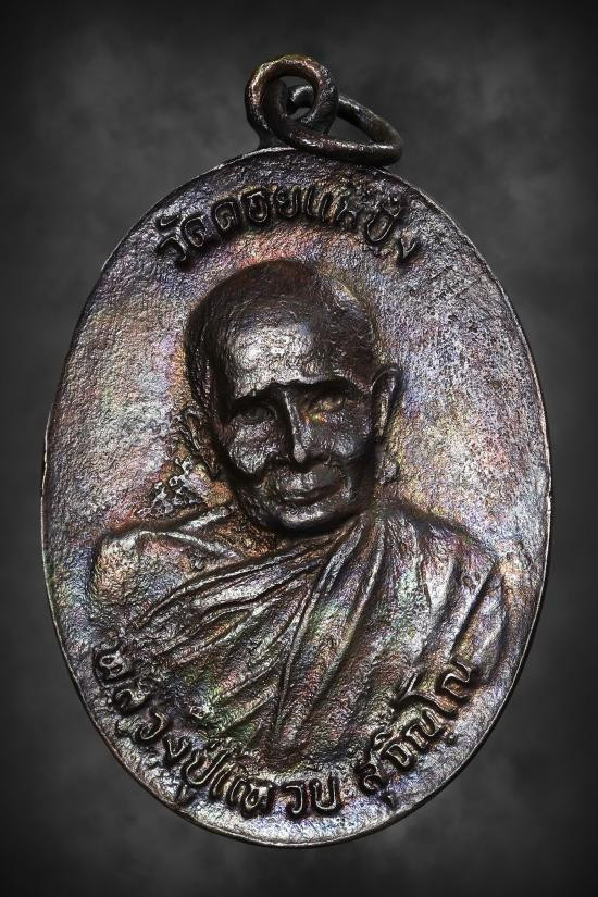 เหรียญหยดน้ำหลังพระพุทธ ภปร หลวงปู่แหวน ปี2525 (บล็อกกองษาปณ์) เนื้อนวะ |