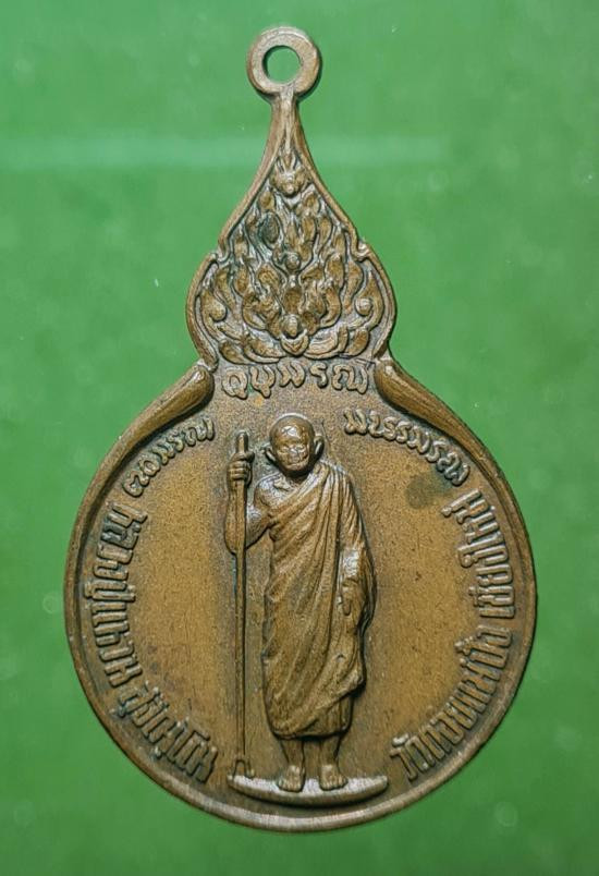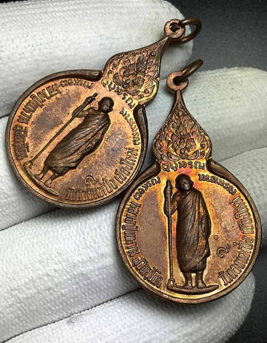 เหรียญยืนถือไม้เท้า รุ่นรวมใจ หลวงปู่แหวน วัดดอยแม่ปั๋ง จ.เชียงใหม่ ปี 2518 ตอกโค้ต. |