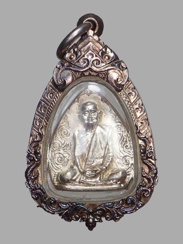 พระปิดตาเนื้อเงิน รุ่นพุทธคุณ หลวงพ่อเกษม เขมโก พร้อมเลี่ยมทองสวยๆ |