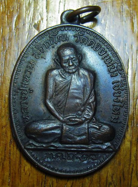 เหรียญหลังเจดีย์หลวงปู่แหวน วัดดอยแม่ปั๋ง2517 เนื้อนวะโลหะ |