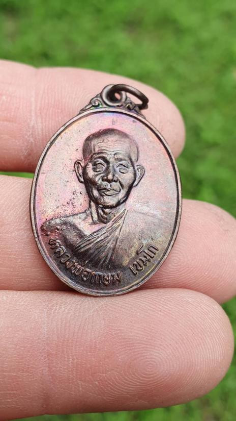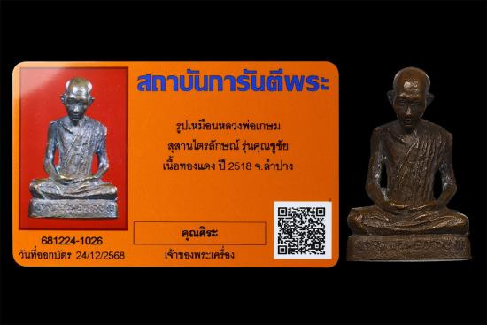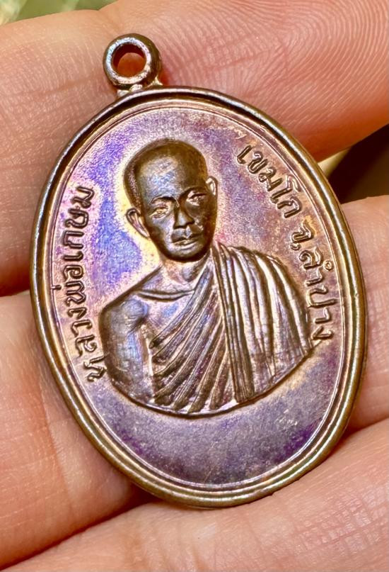 เหรียญ ครูบาแก่น วัดประตูป่อง ลำปาง ปี 2518 ทองแดงรมดำ หลวงพ่อเกษมปลุกเสก ...เคาะเดียว |