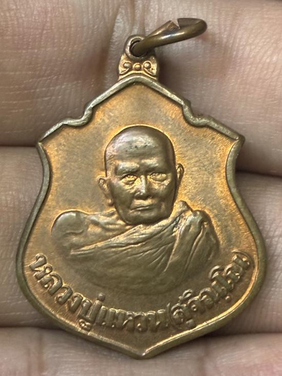 เหรียญ หลวงปู่แหวน วัดดอยแม่ปั๋ง รุ่นเมตตาสร้างเจดีย์ พะเยา ปี 2520 พิมพ์ใหญ่ ม มี ขีด....กะไหล่ทอง |