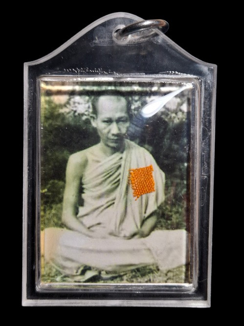รูปภาพหลวงพ่อเกษม เขมโก หลังปั้มหมึก ติดจีวร ปี2518 ขนาด 1 นิ้ว เลี่ยมพร้อมใช้ #5 |