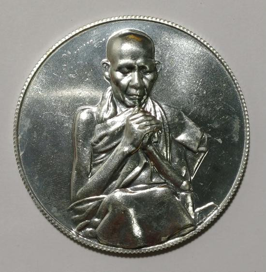 เหรียญยืน รุ่นบารมี 81 เนื้อเงิน หลวงพ่อเกษม เขมโก สร้างปี พ.ศ.2535 |