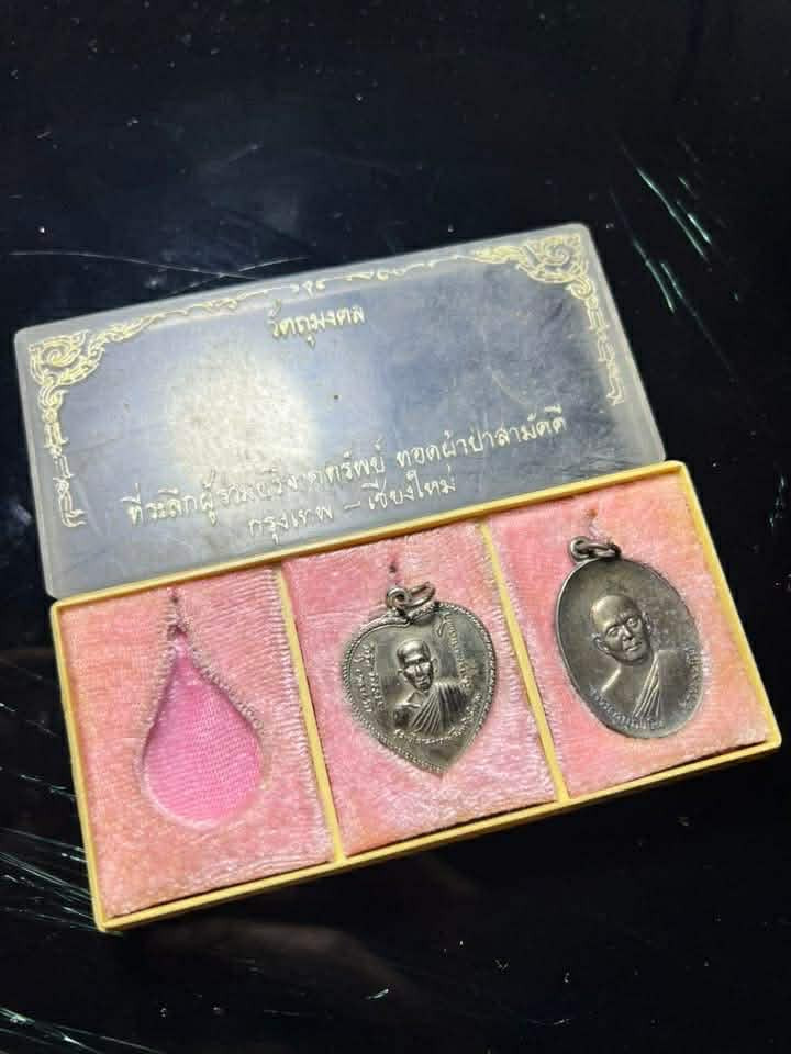 เคาะเดียวแดง เหรียญแสตมป์ รุ่น มงคลเกษม7รอบ ปี 38 ประกอบด้วย เนื้อนวะโลหะ เนื้อทองเหลือง และเนื้อทองแดง พร้อมกล่อง (2) |