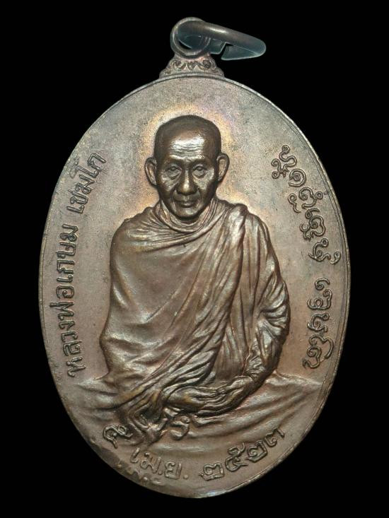 เคาะเดียวแบ่งปัน เหรียญหลวงพ่อเกษม เขมโก รุ่นนั่งพาน 3 มต. เนื้อฝาบาตร |