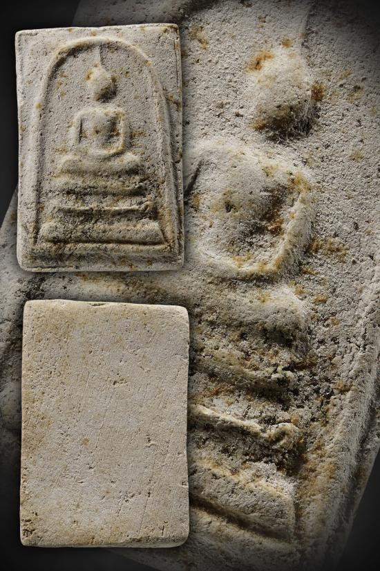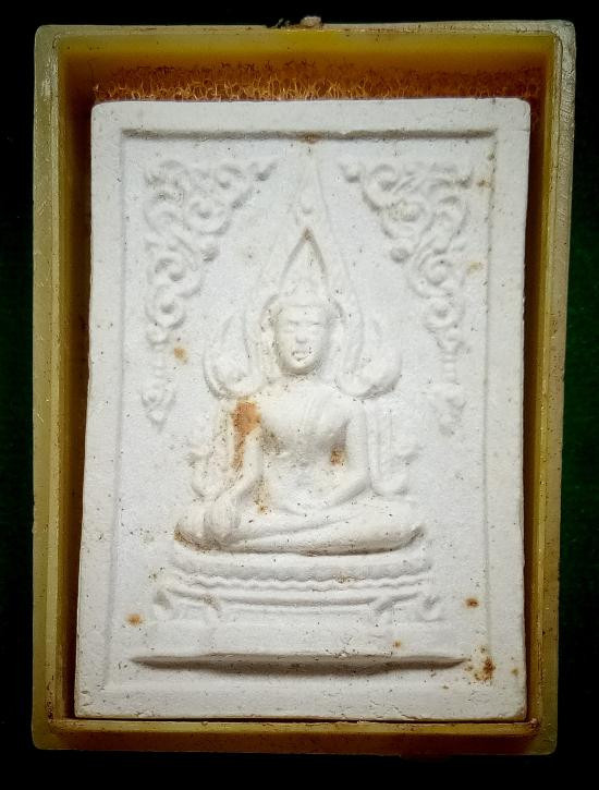 พระผงหลวงพ่อเกษมข้าวก้นบาตรุ่นแรก (3แชะ) ปี2533 หลังแผ่นทองแดง กล่องเดิม |