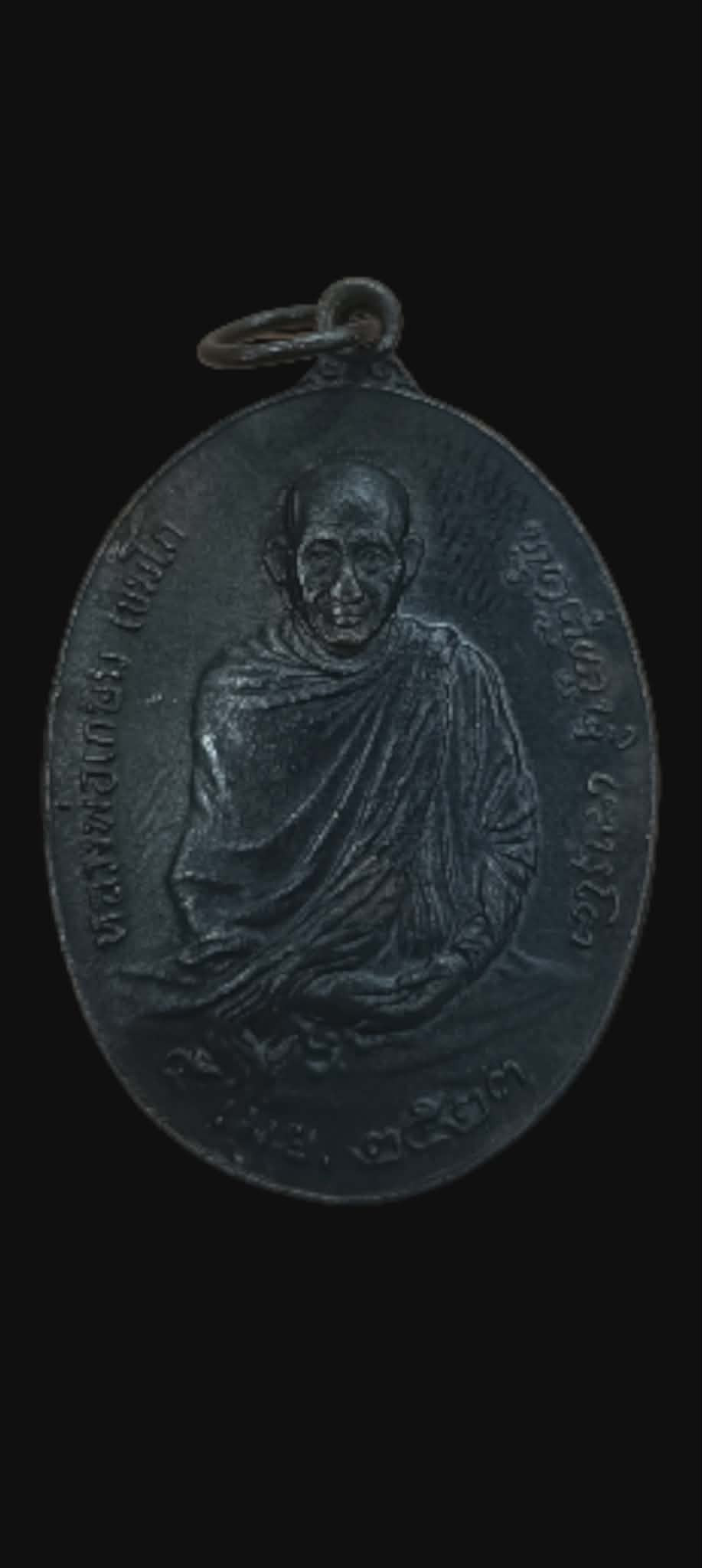 เหรียญหล่อรูปไข่หันข้าง หลวงพ่อเกษม รุ่นมงคลเกษม81 กล่องเดิม |