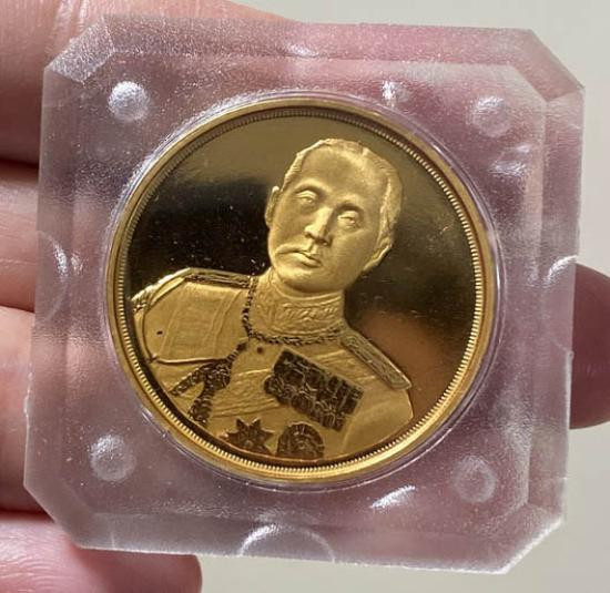 เหรียญชนะมารหลวงพ่อเกษม เขมโก ปี 2538 เนื้อบรอนซ์ทอง |