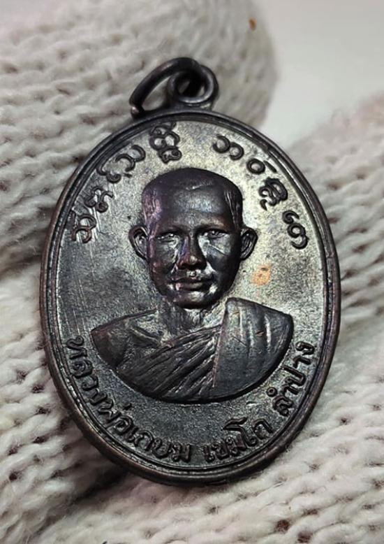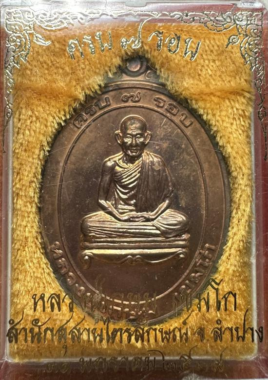 เหรียญหลวงพ่อเกษม รุ่นคุ้มภัยประจำปีเกิดปี 2538 เนื้อฝาบาตร ปีจอ สภาพผิวหิ้งตามรูป ราคาเบาๆ |