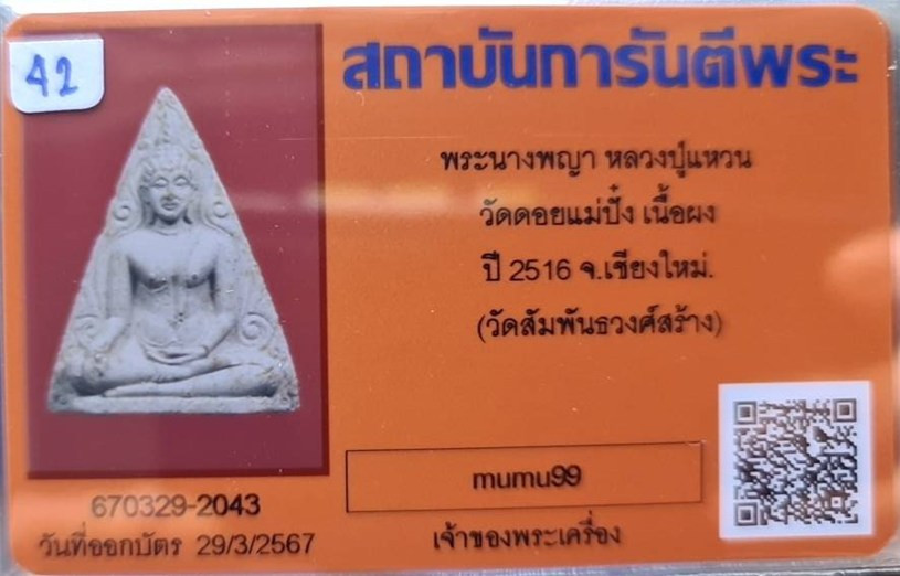 พระผงซุ้มพระพุทธชินราช หลวงปู่แหวน สุจิณโณ วัดดอยแม่ปั๋ง ปี พ.ศ ๒๕๑๖ ( หายาก ) |