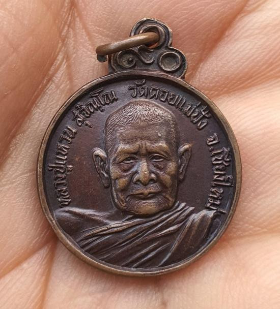 วัดใจเหรียญหลวงปู่แหวน สุจิณโณ วัดดอยแม่ปั๋ง ปี 2521 รุ่นร่มโพธิ์ เนื้อทองแดง |