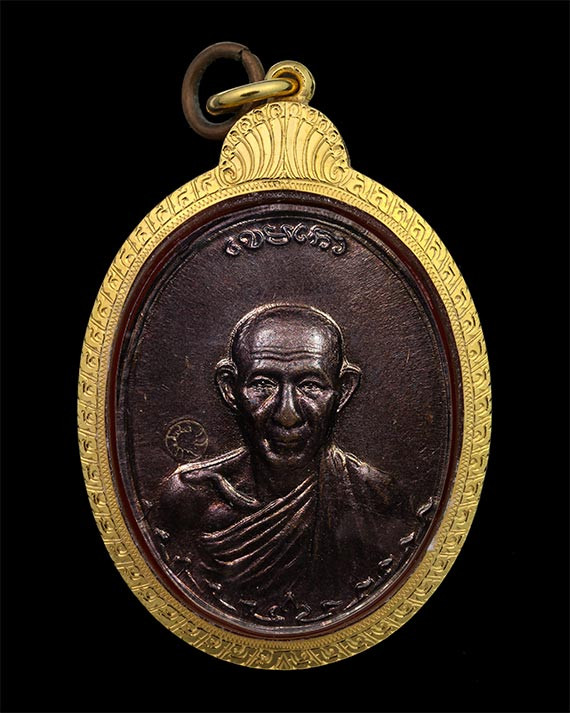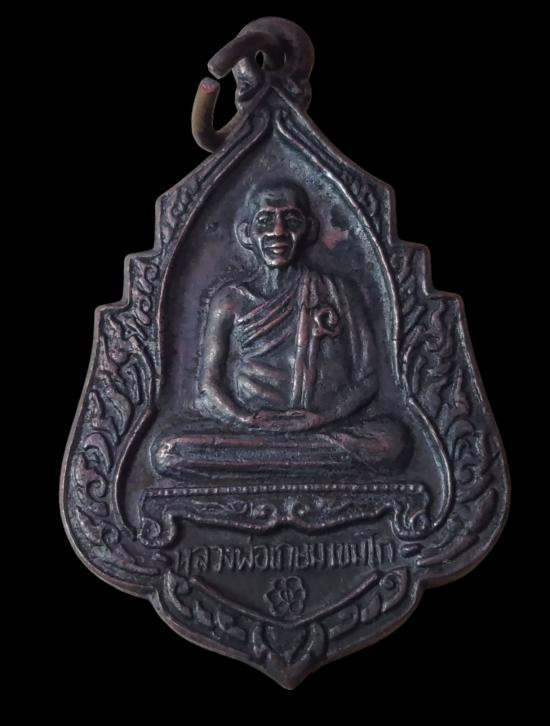 ปิดตาหลังรูปเหมือน หลวงพ่อเกษม เนื้อทองแดง |