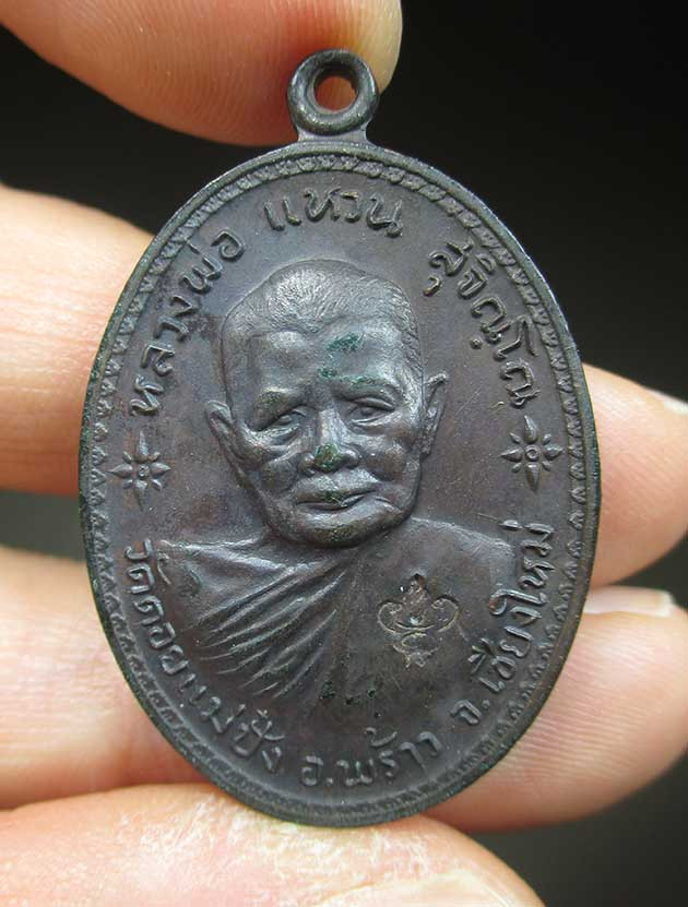 (1)วัดใจเหรียญหลวงปู่แหวน พิมพ์ยืน หลังรางปืน เนื้อทองแดงรมดำเดิมๆ ปี 2517 จ.เชียงใหม่ |